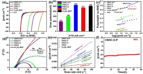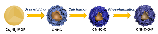 为了解决这一难题,应化实验201班本科生李纯朴同学自大二暑假开始进入w66利来旗舰厅肖振宇、王磊教授课题组进行科研攻关,采用尿素刻蚀和分步磷化工艺成功制备了富含缺陷的双壳过渡金属磷化物微球(CNHC-O-P)。CNHC-O-P具有的独特的富含缺陷的双壳结构可以调整材料的电子结构,增加它们的本征活性,并为提高HER性能提供更容易接近的活性中心。因此,优化后的催化剂在宽pH范围内表现出优异的析氢性能。这项工作为在宽pH范围内制备高性能、低成本的HER催化剂提供了一种潜在的策略。