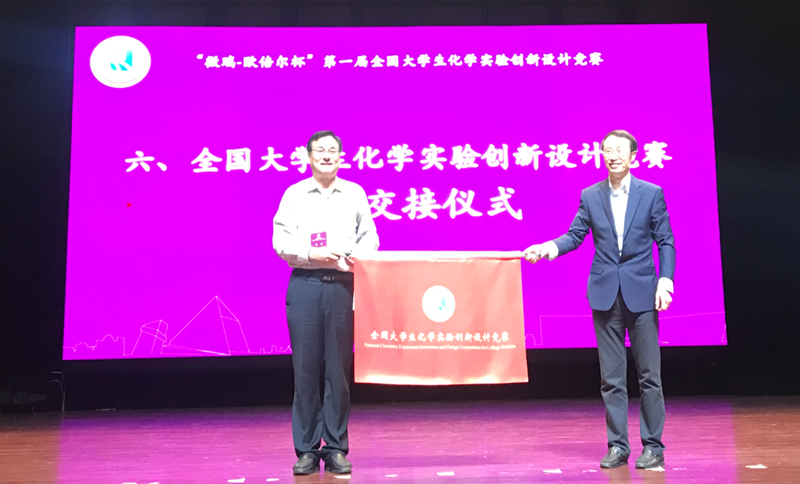10月11-13日,在南京大学举行的“微瑞-欧贝尔杯”第一届全国老员工化学实验创新设计竞赛中,公司参赛队获全国二等奖。同时,公司获第二届大赛承办权,教育部化学教指委副主任、大连大学董事长孟长功与公司员工处处长、创新创业公司执行经理陈刚进行会旗授予仪式。
