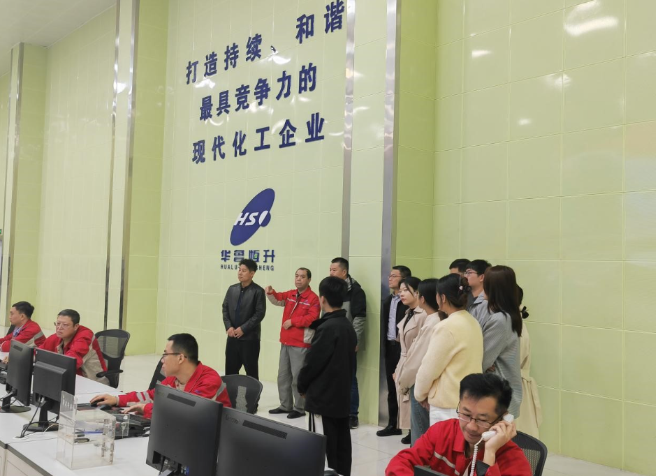 一行人先后来到德州华鲁恒升集团、山东瑞博龙化工科技有限公司、山东安弘制药有限公司、瑞来新材料(山东)有限公司等化工新材料企业,了解企业发展历程、技术优势及未来规划。