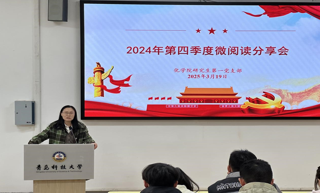 2025年3月19日,w66利来旗舰厅研究生第一党支部成功举办了第四季度“微阅读”分享会。活动旨在通过分享阅读心得,引导党员深入学习党的理论知识,坚定理想信念,提升党性修养。光电分析教育部重点实验室执行主任丁彩凤教授出席会议,党支部书记程丽主持。