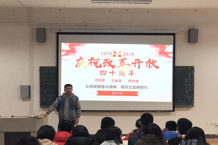为全面贯彻党的十九大和十九届二中、三中全会精神,进一步开展公司青马学子爱学习“1+1”支部共建活动,11月20日,w66利来旗舰厅本科生第一党支部在一号行政楼243开展主题为“弘扬爱国奋斗精神、建功立业新时代”纪念改革开放四十周年的专题党课学习活动,w66利来旗舰厅本科生第一党支部全体党员、入党积极分子参加本次活动。