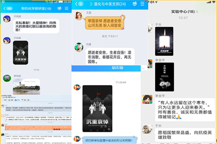公司师生通过个人微信朋友圈、QQ空间以及教研室、班级的微信群、QQ群等网络平台和社交媒体发文发声,表达哀思。致敬时代英雄,缅怀逝世同胞。公司各师、生党支部书记积极组织支部成员以悼念学习英烈为主题开展主题党日活动,祭奠留言,网上献花,愿花飨逝者、春暖斯人,向先烈致敬,向英雄学习。