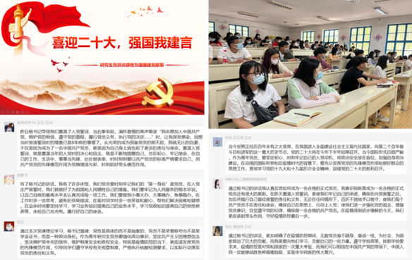 【喜迎二十大,强国我建言】在党的百年奋斗重大成就和历史经验影响下,全体研究生党员更加坚定共产主义的理想信念。同志们畅谈个人感悟,以建言献策的方式写下“请党放心,强国有我”的铮铮誓言。