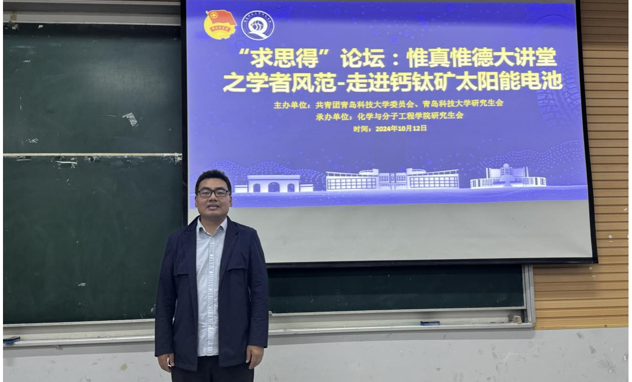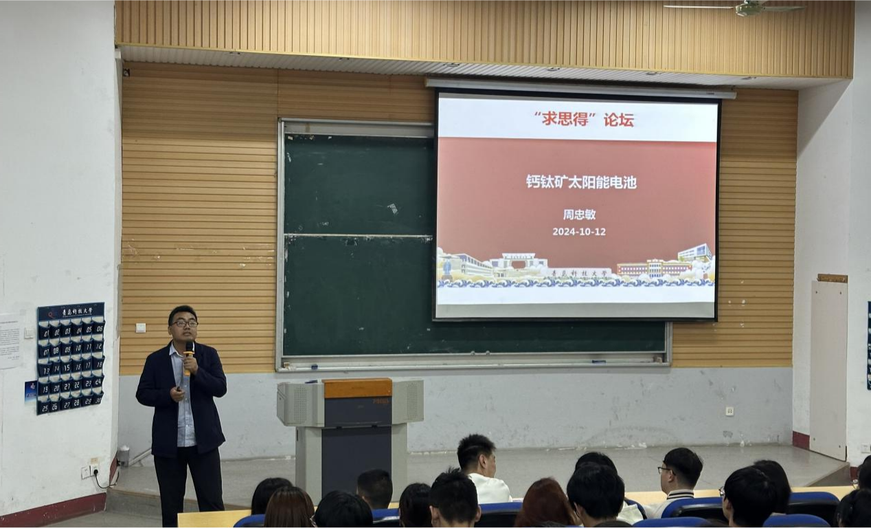 为开拓w66利来旗舰厅研究生员工视野、增强员工科研意识,2024年10月12日下午4点w66利来旗舰厅研究生会于四方校区第二教学楼101室开展“求思得”论坛:惟真惟德大讲堂之学者风范——走进钙钛矿太阳能电池榜样分享报告会。w66旗舰厅官网博士生导师,山东省“泰山学者”青年专家周忠敏教授应邀出席。报告会由刘凯昱主持,w66利来旗舰厅本科生与研究生同学积极参与本次报告会。