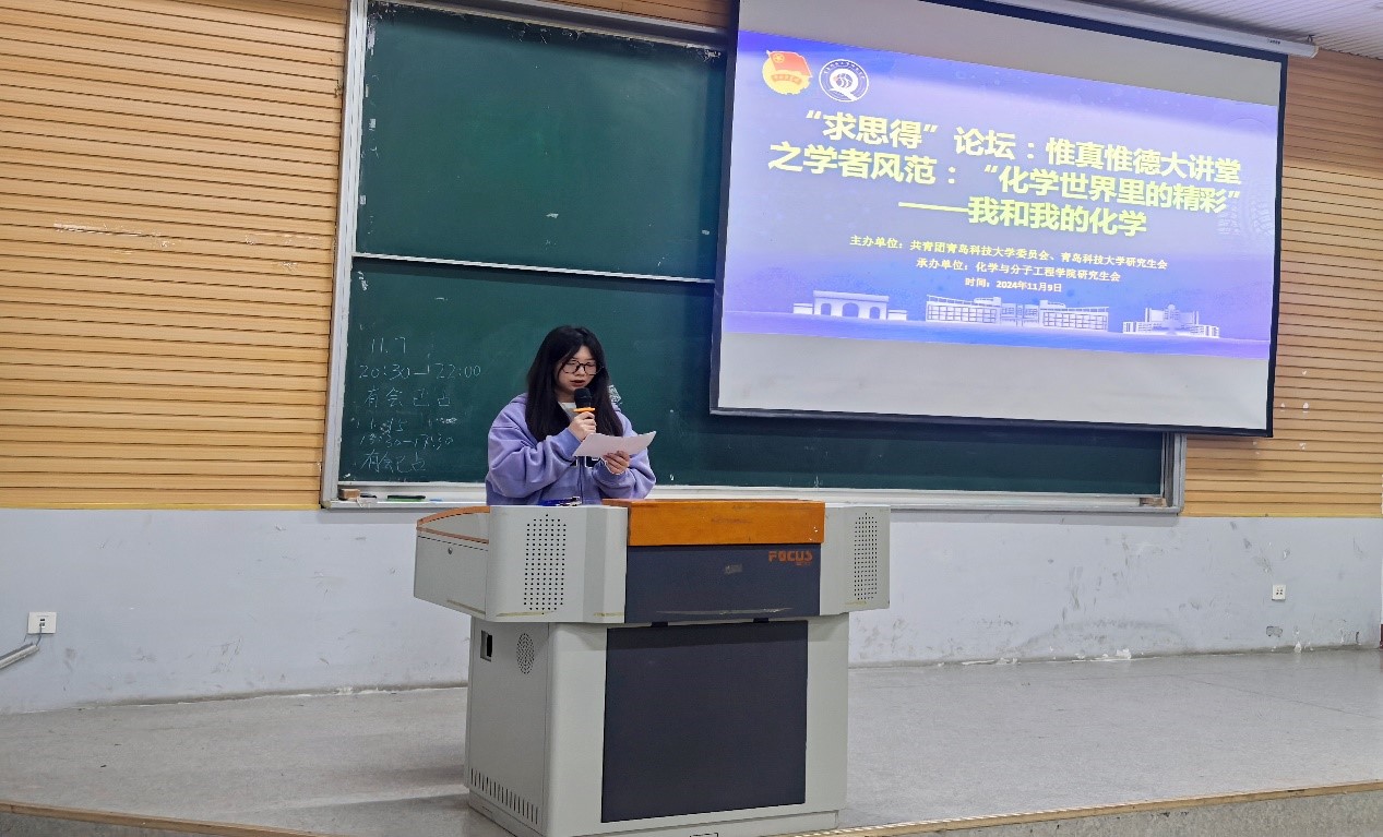 2024年11月9日下午4点w66利来旗舰厅研究生会于四方校区第二教学楼101室开展“求思得”论坛:惟真惟德大讲堂之学者风范“化学世界里的精彩”专题讲座。w66旗舰厅官网博士生导师,山东省“泰山学者”青年专家吕健教授应邀出席。报告会由刘云主持,w66利来旗舰厅本科生与研究生同学积极参与本次报告会。