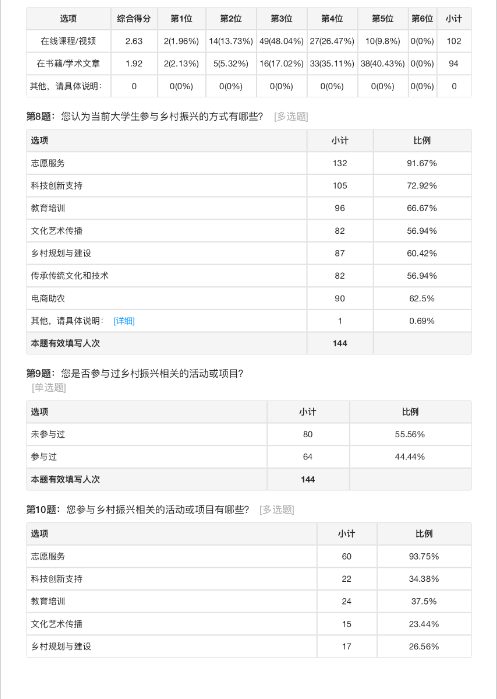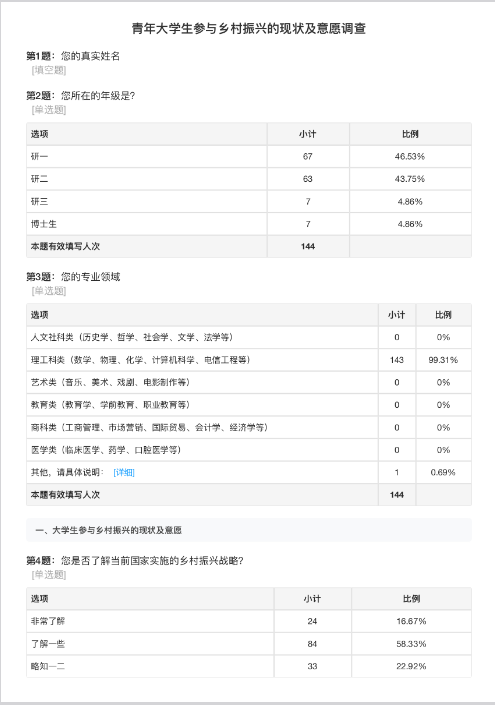 调查过程中,研究生团队开展了问卷调查、访谈等多种形式的调研活动,收集了大量具有代表性的意见和数据。调查结果揭示了当前青年老员工在乡村振兴方面的参与情况,并深入分析了影响老员工参与意愿的主要因素。这些宝贵的调查数据为政策制定者在制定和优化乡村振兴相关措施时提供了重要参考。同时,此次调查活动也极大地提高了老员工群体对乡村振兴战略的认知度和参与热情。