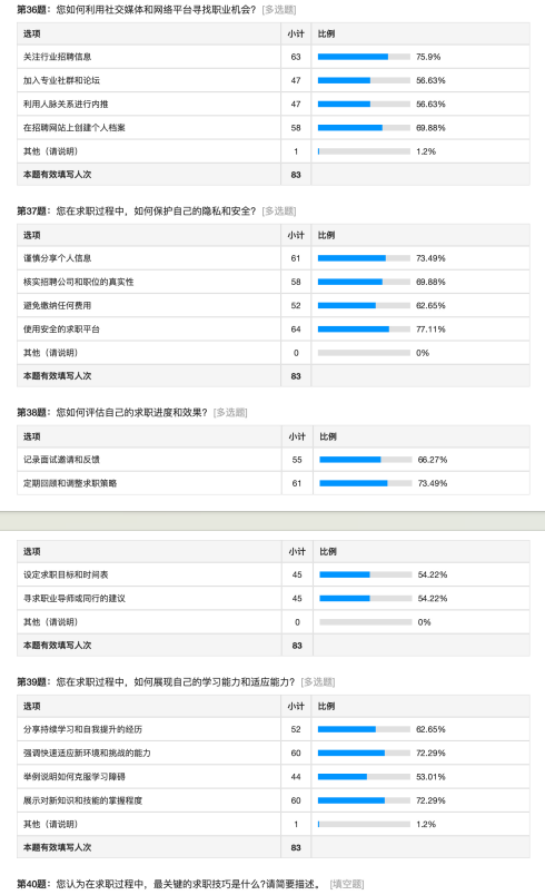 活动伊始,研究生会权益部精心准备并发放了调查问卷。随后,广泛收集了同学们对于就业问题的关注点和意见。这一举措不仅为同学们提供了一个表达就业困惑和期望的平台,也为公司今后的就业指导工作提供了宝贵的数据参考。