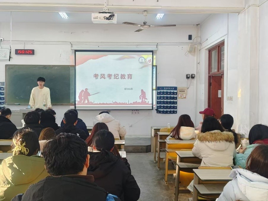 为进一步加强研究生的学术诚信建设、考风考纪教育,引导员工树立正确的考试观念,提高诚信意识,在12月16日研究生骨干诚信教育结束后,w66利来旗舰厅研2024级各班近期通过多渠道、多形式开展考风考纪主题班会,倡导诚信应考。