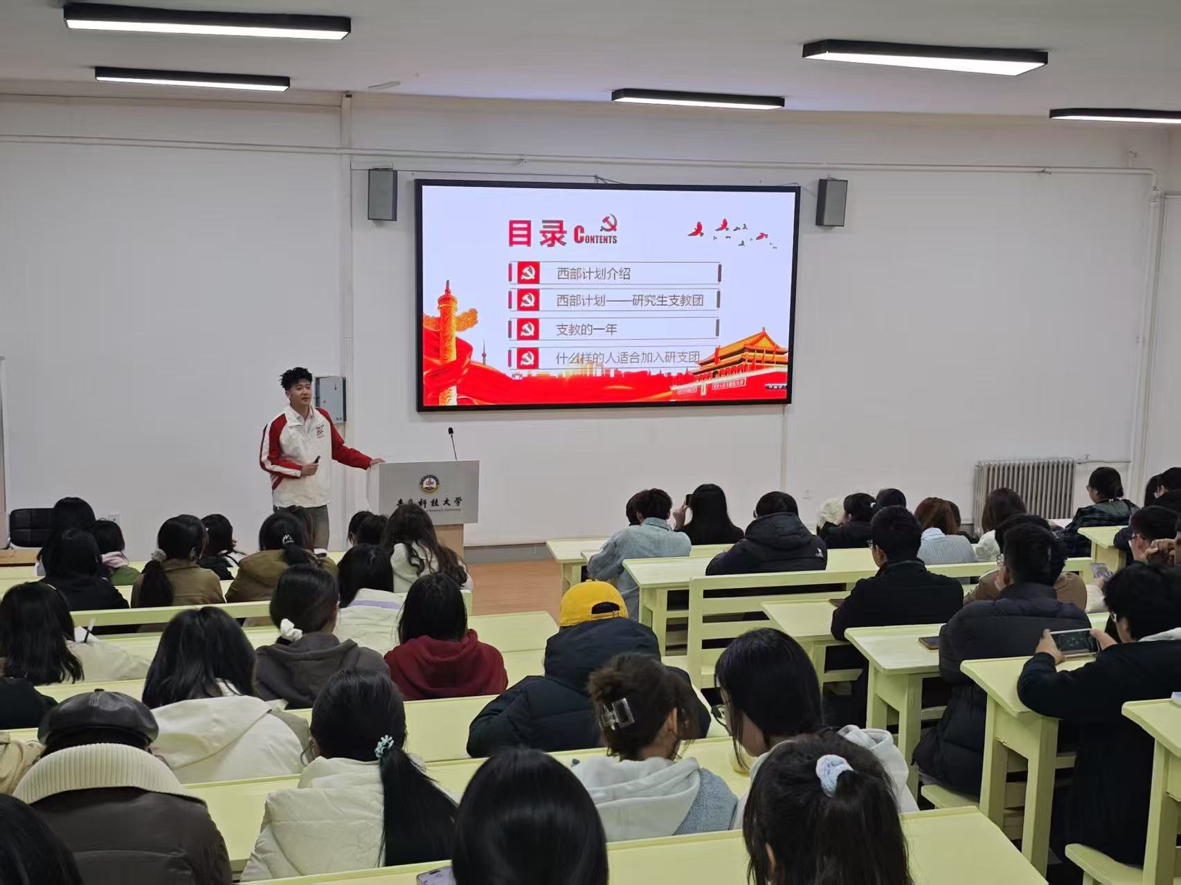 宣讲会系统介绍了2025-2026年度西部计划的政策要点,包括招募对象、八个服务专项、报名流程及社会保障等内容,着重解读了研究生支教团项目的选拔标准与服务要求。通过生动的政策讲解、真实的案例分享和丰富的影像展示,全面展现了西部计划的服务内涵,有效激发了员工们投身祖国西部建设的热情。