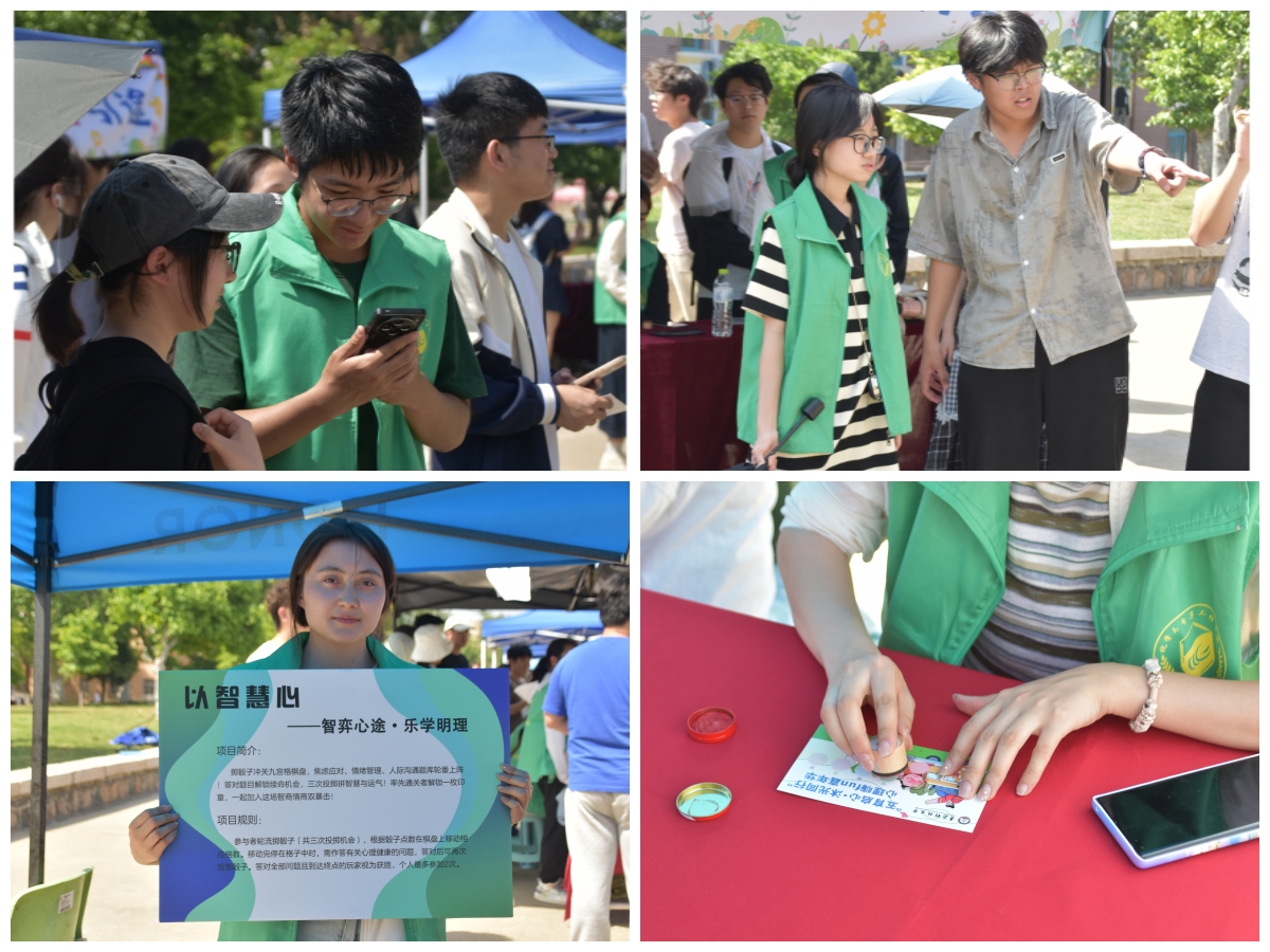 活动现场,化学心理健康协会的师生们凭借专业素养与无限热情,扛起了德育、智育两个板块以及入场引导处和抽奖处的重任,他们以热情周到的服务,确保了活动的有序进行,让每一位参与的同学都能感受到活动的温暖与关怀。工作人员们身着象征生机与活力的w66利来旗舰厅绿色志愿服,穿梭于各个活动区域,成为现场一道亮丽的风景线。