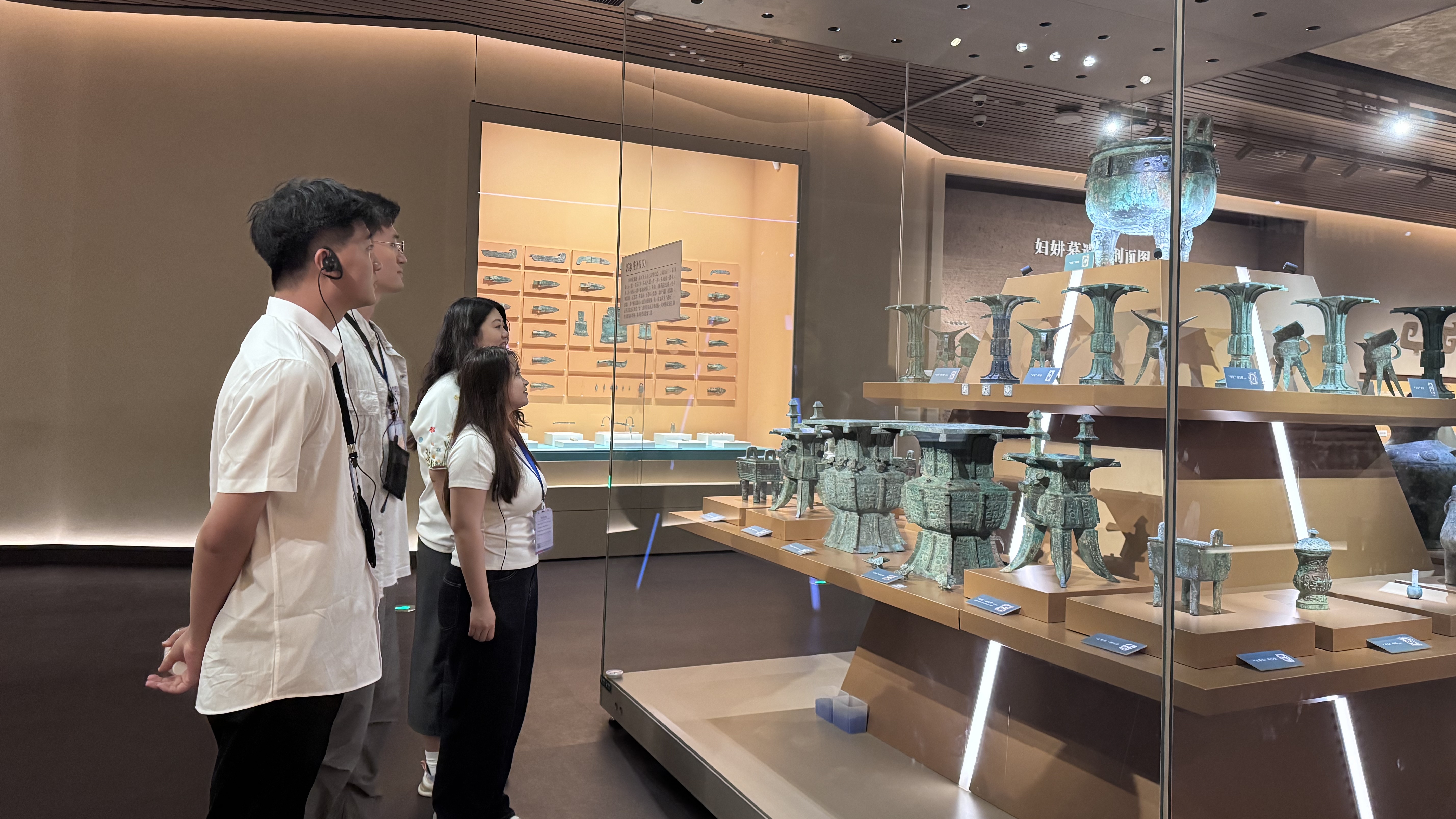 殷墟作为中国商代晚期的都城遗址,是中华文明重要的发源地之一,位于安阳市,是我国首个有文献记载、并为甲骨文和青铜器实物印证的古代都城遗址。殷墟博物馆通过大量珍贵文物的展陈,系统展现了商代政治、宗教与艺术成就,凸显了古代文明的高度发展。团队成员漫步其间,驻足于甲骨碑刻与青铜重器之间,感受到中华文化的厚重与深远。