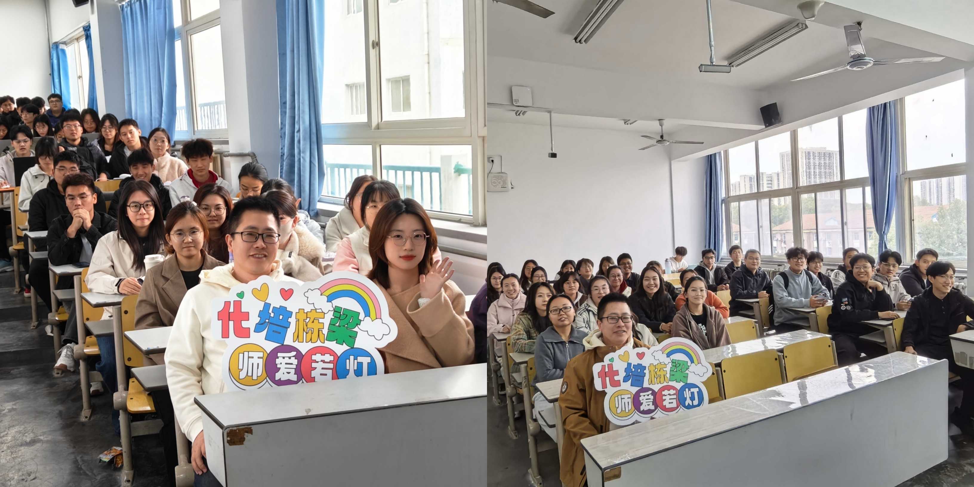 活动现场,各班级员工有序列队,热情邀请辅导员,班主任或课老师参与合影。同学们手持为老师定制的KT板,笑容明媚又真挚,平日里严谨治学的老师们也眼含笑意,与同学们亲切互动,共同定格了一个个美好的瞬间。随着相机快门声的响起,师生间的深厚情谊被一一记录,成为校园中一道亮丽的风景线。