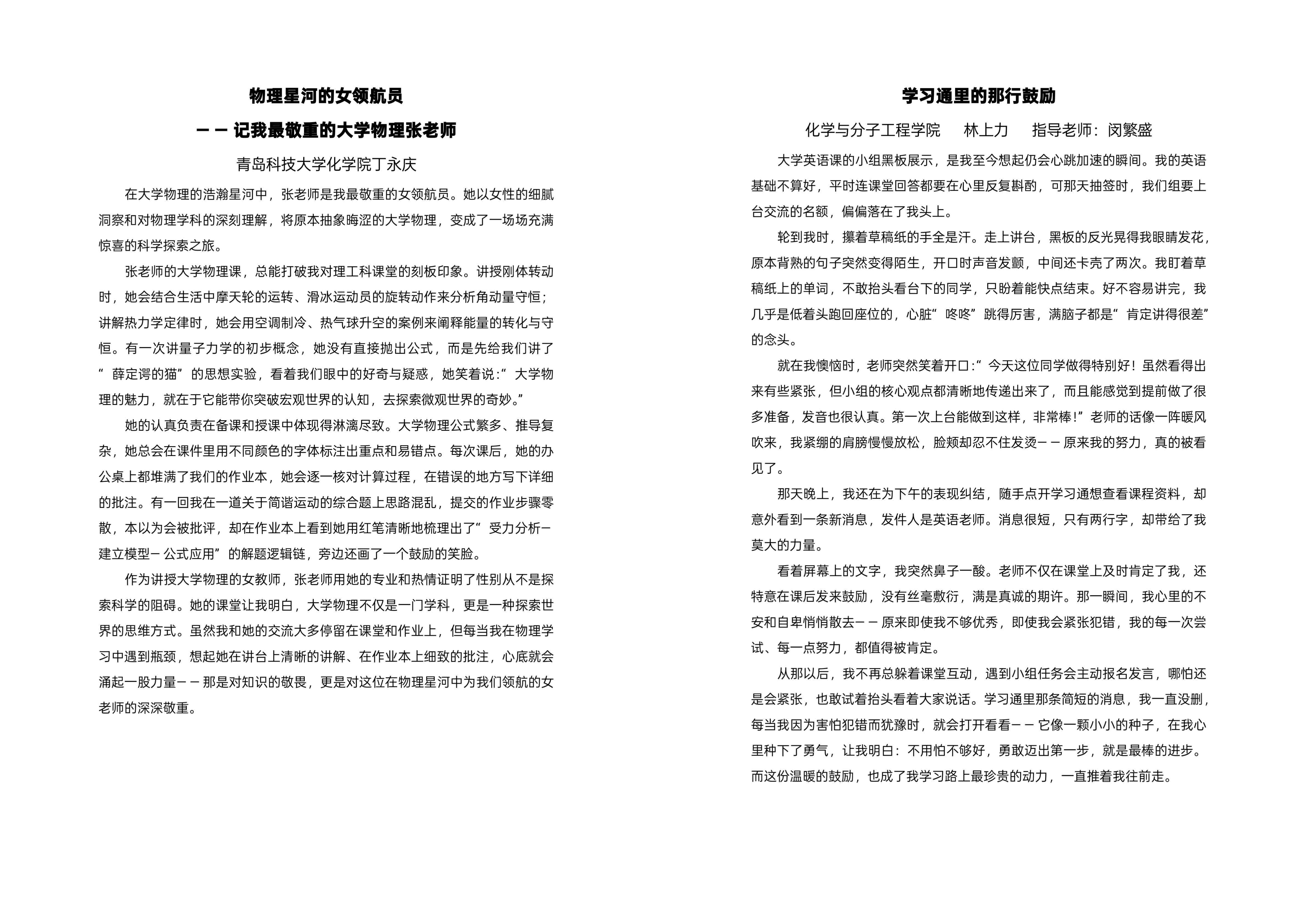 “笔下千言诉师恩,纸间万语道真情。”在“我最敬重的老师/我与老师的故事”征文比赛中,员工们踊跃投稿,用文字记录下老师的言传身教、暖心瞬间。一篇篇文章,如涓涓细流,流淌着化院学子对师恩的感念,更让这份跨越讲台的温情在文字中永恒。