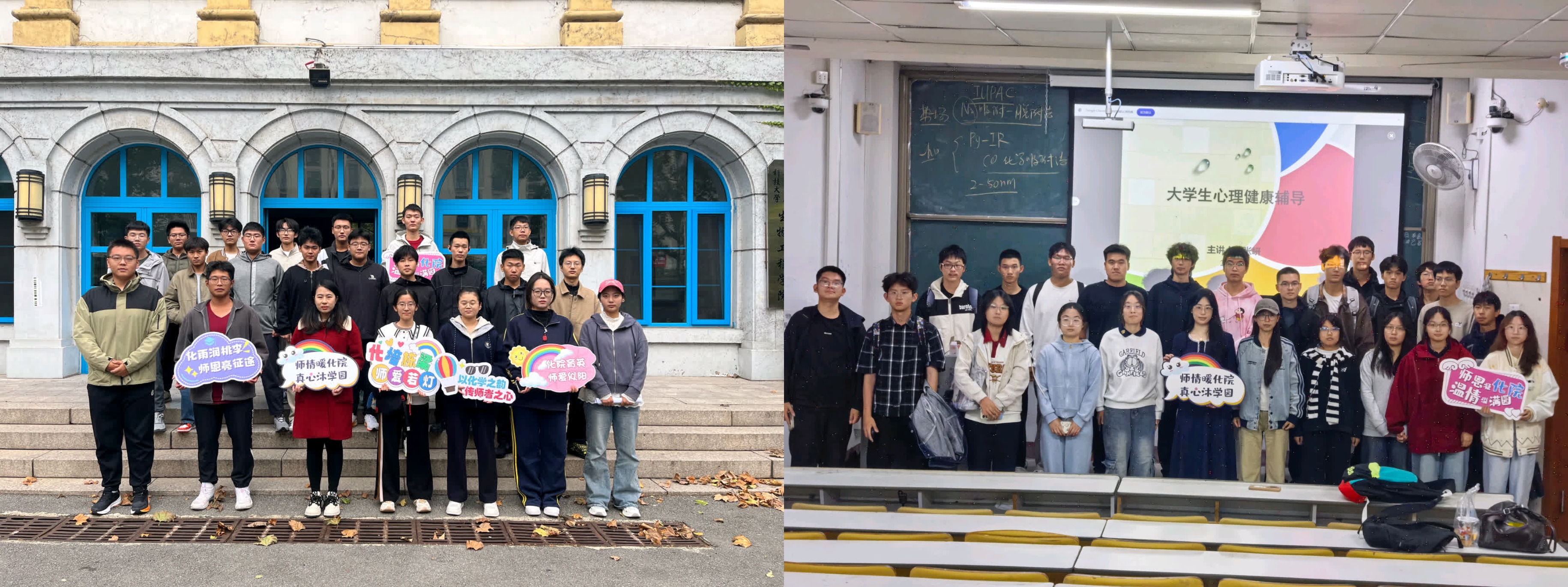 “一纸合影藏师情,满帧温暖忆初心。”在“师情合影,定格温馨”活动中,同学们与辅导员、班主任、任课老师共同拍摄了专属照片,让师生同框的温馨瞬间成为这个秋日最动人的纪念。一张张照片,既是对师恩的珍藏,也是化院学子与老师间情谊的生动缩影。