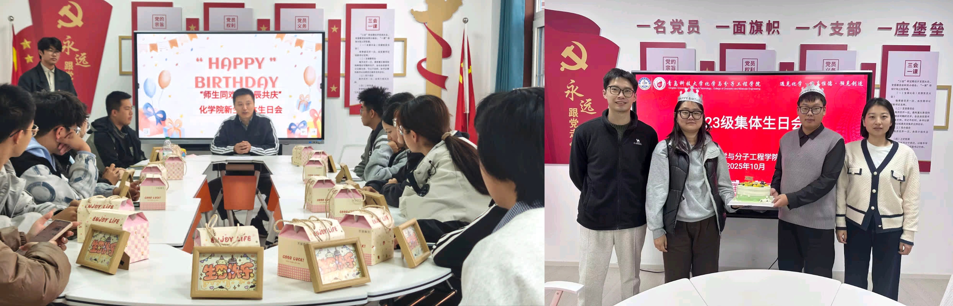 “师生同欢庆生辰,温情满溢暖化院。w66利来旗舰厅学工班主任兼团委书记闵繁盛、23级本科生辅导员昝祺祺、刘涛为10月下旬过生日的同学举办集体生日会活动。大家在破冰游戏中开怀畅玩,在礼物发放环节收获惊喜,更在师生共庆生辰的温馨氛围里,感受w66利来旗舰厅大家庭的温暖与老师的深切关怀。