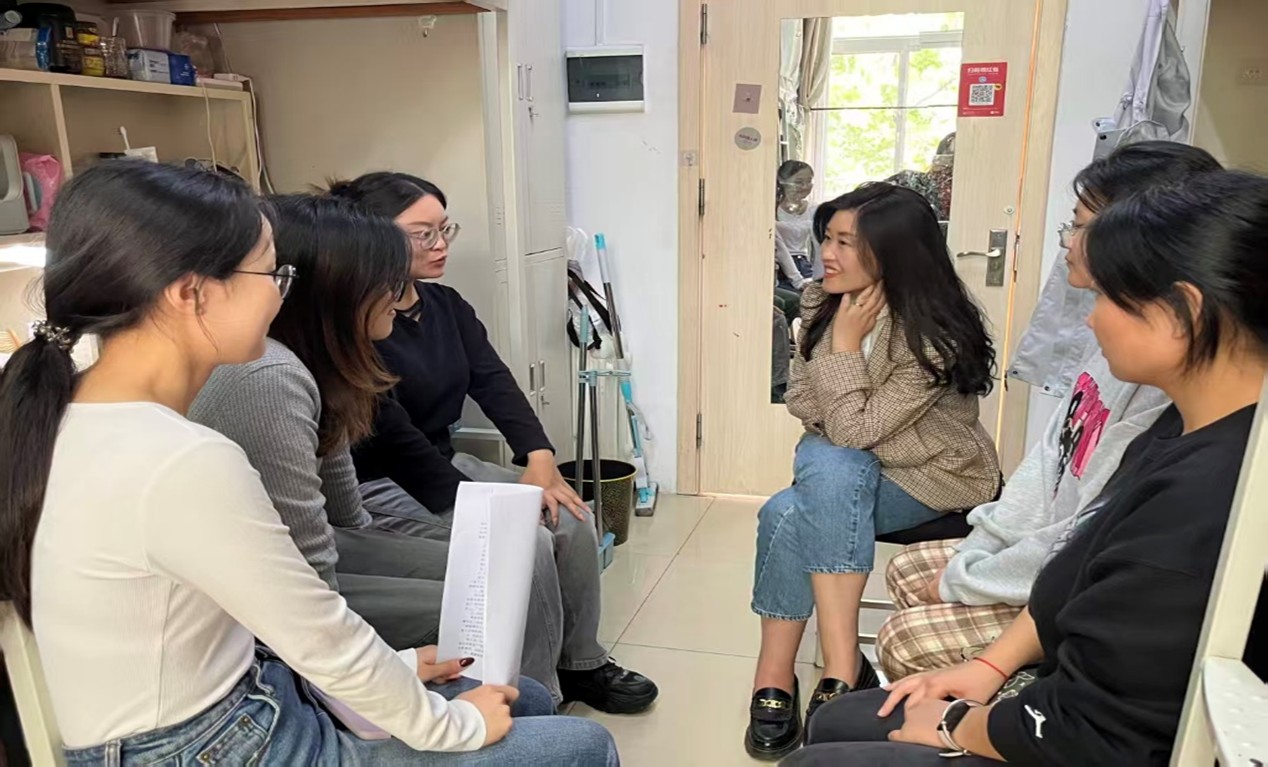 第一板块“我的情绪”宿舍座谈会由各宿舍长主持,围绕情绪认知与心理调适开展交流。程丽老师聚焦科研学习与日常生活中的情绪调适问题,倾听研二同学在实验推进与论文写作中遇到的困惑,结合自身经验提供应对思路与调节方法,切实帮助员工缓解心理压力;满馨悦老师则重点关注新生适应问题,针对同学们在科研起步阶段遇到的共性问题,分享时间规划、导师沟通、情绪调节等实用技巧,助力新生顺利融入研究生生活。