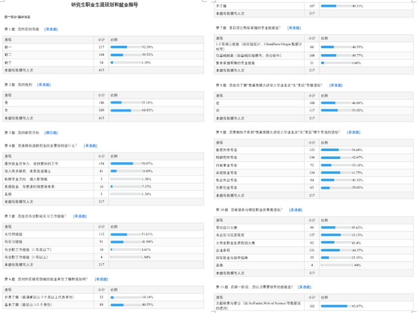 为精准聚焦同学们的求职与发展需求,持续优化升级“化育山海 青春化行”研究生就业助力项目,使其为同学们提供更精准、更有效的服务,2025年11月18日,公司研究生会开展研究生职业生涯规划与就业指导问卷调研活动。本次活动获得公司各年级研究生的积极响应,共回收有效问卷415份。