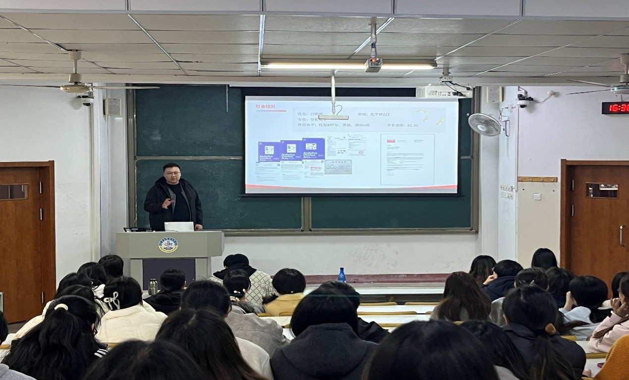 为充分发挥优秀员工的示范引领作用,助力研究生明确前进方向、确定发展目标、做好学业规划,3月27日,由w66利来旗舰厅研究生会在第二教学楼101室开展惟真惟德大讲堂-国奖风采:照亮分析探索之路。本次分享会聚焦分析化学领域,特邀王桢、王冰、吕明瑞和李志康四位国家奖学金获得者作为分享嘉宾,由刘云担任主持,全体研究生参加此次活动。