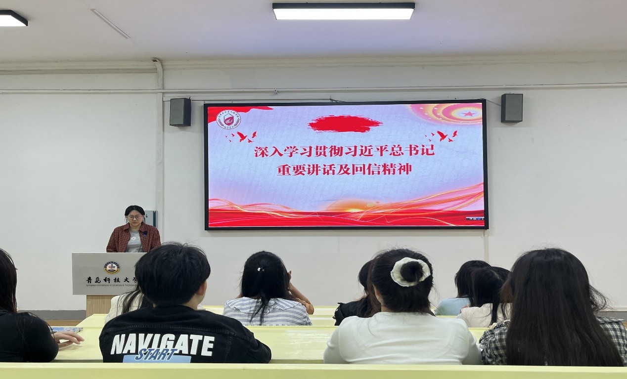 会上,研究生会成员刘栩宁带领与会同学共同学习回信内容,深刻领会习近平总书记对青年胸怀理想、脚踏实地、服务社会的殷切期望。学习聚焦于习近平总书记对青年一代“胸怀理想、脚踏实地”的殷切嘱托,以及在服务社会、服务人民的实践中成长成才的深刻期望。刘栩宁结合志愿服务实例,对回信中蕴含的奉献精神与时代责任进行了生动解读。深刻而温暖的寄语引发了强烈共鸣,现场气氛庄重而热烈。