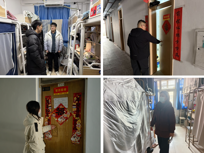 在走访过程中,老师们逐间查看宿舍用电、防火、门窗锁闭等情况,重点排查违规电器、私拉电线、易燃物品等潜在风险点。针对尚未离校的同学,老师们详细询问其返乡行程安排,叮嘱大家务必关注天气变化与交通信息,全程做好个人防护,做到“人走电断、锁好门窗、贵重物品随身携带”。对已离校但未彻底断电的宿舍,辅导员现场协助关闭电源、张贴封条,确保不留安全死角。