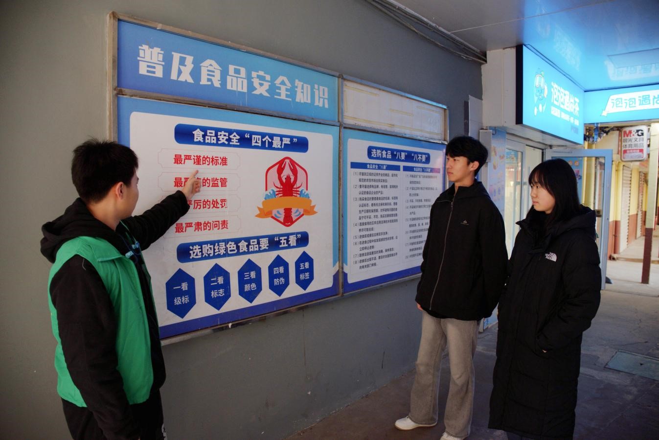 “文明引导志愿行动”中志愿者深入食堂、教学楼、图书馆及主干道进行文明督导。在食堂,引导有序排队、践行“光盘行动”、协助清理餐桌;在教学楼和图书馆,维护自习环境、提醒爱护公物;在主干道,劝导不文明行为,助力营造整洁有序的校园氛围。