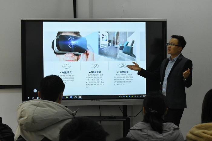 田经理首先向同学们介绍了VR的研发原理、方向、应用及目的,全面展示了虚拟技术对化学的帮助,同学们深入了解了“什么是虚拟技术”。随后,胡总向同学们展示“如何制作动画”,PPT中一张又一张的静态图片,结合到一起形成了精美的动画,让同学们叹为观止。最后的现场互动环节,同学们利用手机,制作了简单的动态图片。刘施施表示希望可以通过VR等虚拟技术代替化学中一些危险性较高或不易观察现象的实验,既保证了员工的安全,同时也让员工观察到实验现象,减少传统实验的劣势。