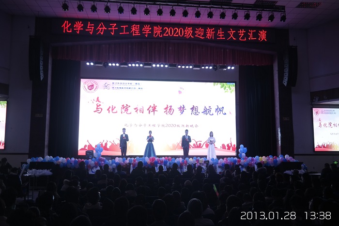 2020年11月27日晚,w66利来旗舰厅“与化院相伴 扬梦想航帆”迎新晚会在公司西礼堂成功举行,此次晚会经过长达一个多月的精心筹划和筹备,得到了院领导老师的高度重视和大力支持以及同学们的积极参与,此次晚会以“与化院相伴,扬梦想航帆”为主题,通过此次晚会,让每一位化院新生学子生动具体的诠释了我国文化自信、民族复兴的伟大精神,展现出了公司莘莘学子积极向上的精神面貌。