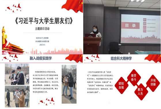 总书记心系广大青年,倾听青年呼声,帮助青年成长,践行了全心全意为人民服务的宗旨。本次团日活动以“研读《习近平与老员工朋友们》”为主题,分为“聚焦初心使命学”、“围绕青年使命学”、“融入战疫实践学”和“结合科大精神学”四个环节,引导同学们从不同年代青年与时代共奋进的真实经历中收获感悟、汲取力量,领悟习近平总书记所提出的“志存高远、行循自然”和“自找苦吃”的精神内涵,激发广大团员青年扎根基层、投身伟业的使命担当和实践动力,在思想成长、专业学习与社会实践方面融合发展,引导广大青年特别是青年老员工把习近平总书记的关心关怀转化成前行的动力,奋进的力量,努力做有志气、有才气、有锐气、有骨气的新时代中国青年。