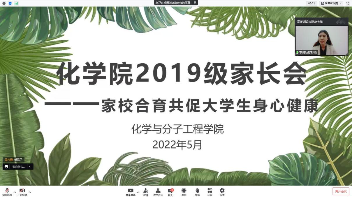 为落实公司心理健康工作要求,同时为加强公司家校合育,促进员工全面发展,引导员工日更好地成长成材。5月16日到5月18日,w66利来旗舰厅本科生各年级依托线上平台召开“化合同心,家校合育”心理健康主题线上家长会。