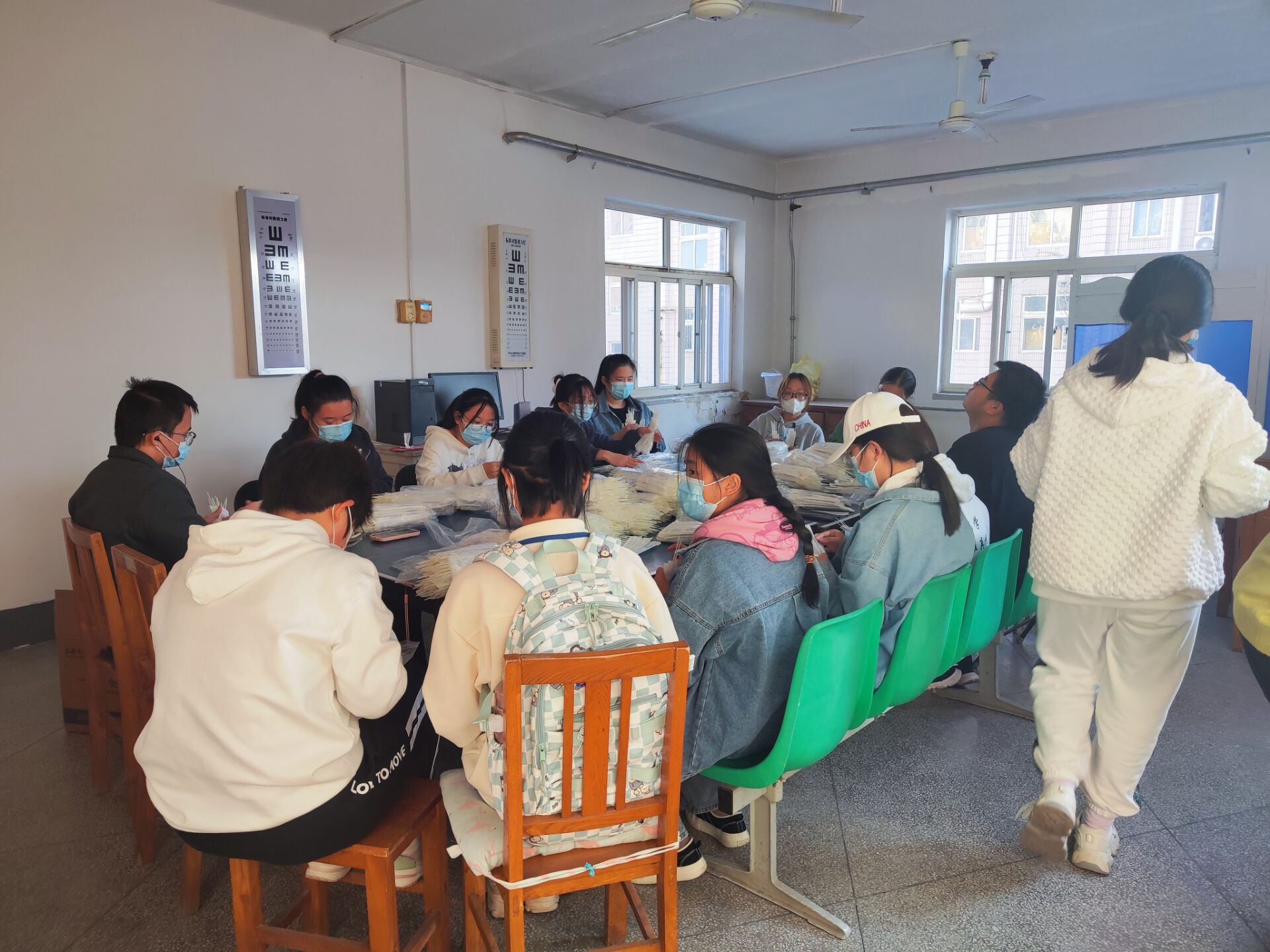 为深入贯彻志愿服务的奉献精神,w66利来旗舰厅感恩社帮助校医院进行核酸检测试纸的准备工作。