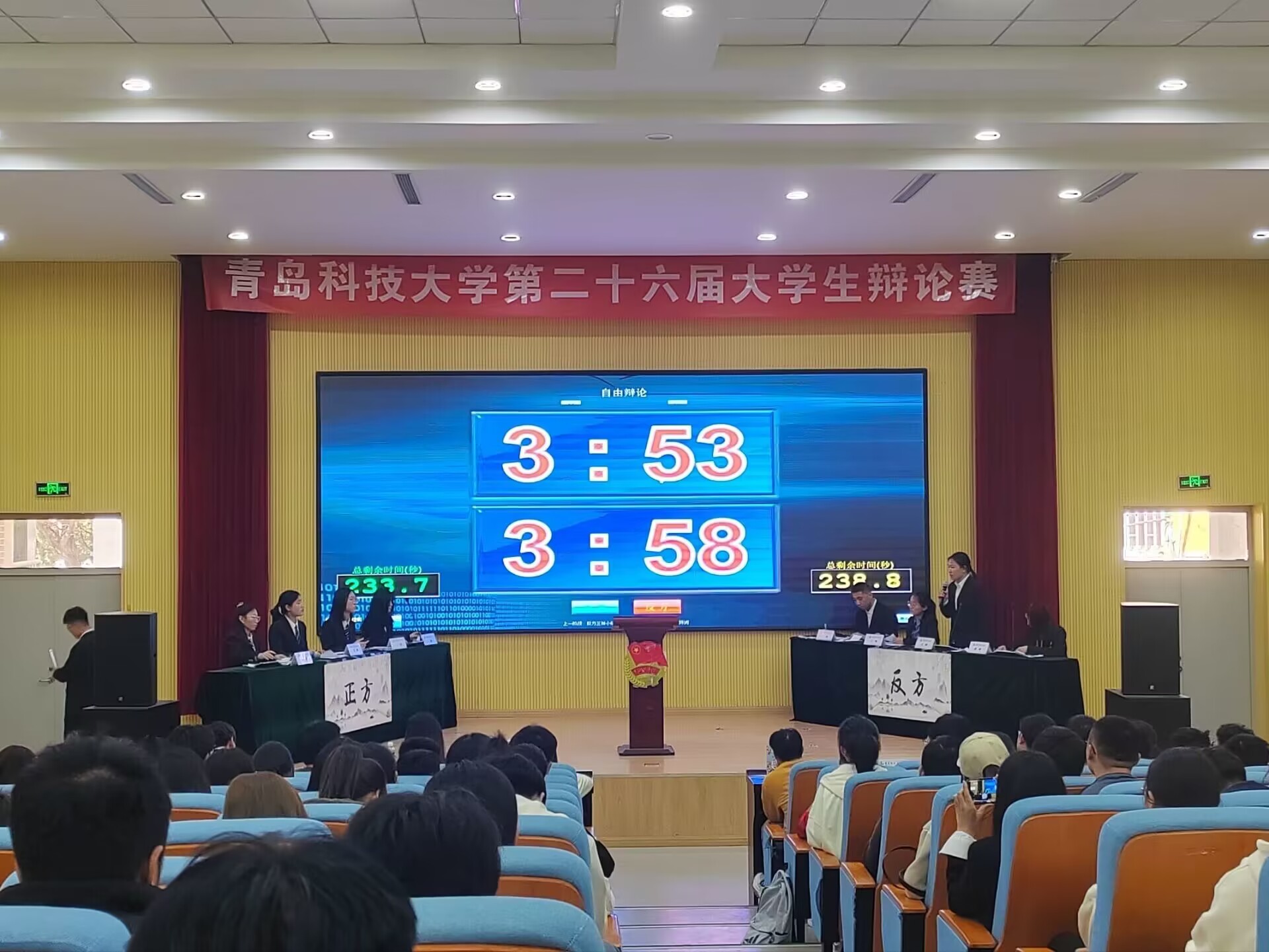 辩论赛的辩题是“策划志愿活动创新性先于实践性还是实践性先于创新性”。首先,双方开篇陈词表达己方论点,陈述选手引经据典,旁征博引论证观点。公司选手从策划志愿活动实践性先于创新性出发,层层剖析己方论点,用慷慨激昂的语言陈述己方观点。双方攻辩阶段,各位辩手互相盘问,你来我往,针尖对麦芒,现场气氛迅速升温。在自由辩论阶段,双方辩手才思敏捷,语言流利,唇枪舌战,在坚持己方观点的同时,积极寻找对方的漏洞,辩论异常精彩。