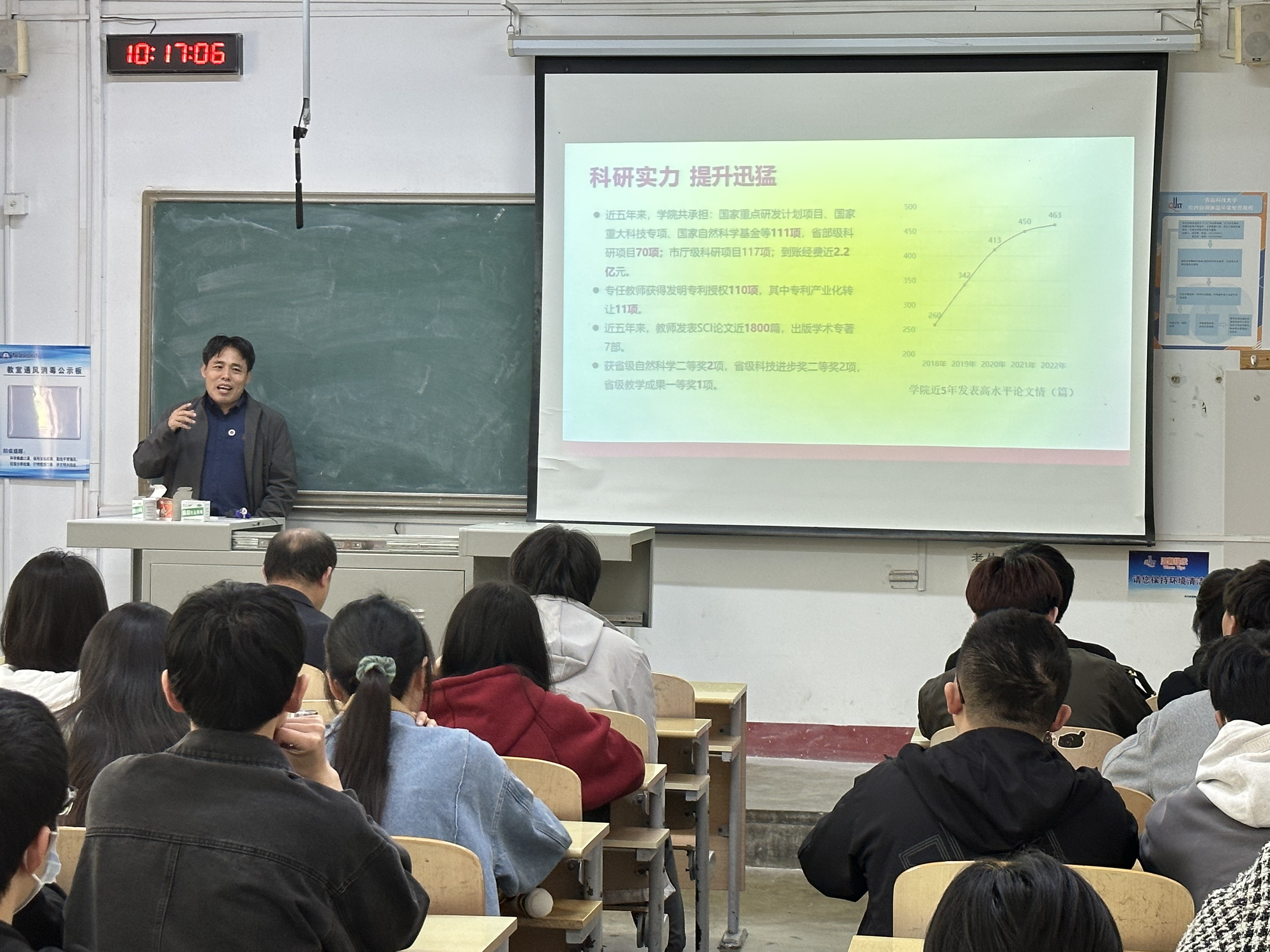 报告会围绕深圳大学化学学科介绍、招生政策宣讲和学术前沿报告三个环节展开。任祥忠详细介绍了深圳大学化学与环境工程公司的发展沿革、人才培养情况和研究生招生政策,并就同学们关心的研究生初试和复试重点进行解说。任祥忠还就其公司团队关于石墨烯及其复合材料研究、柔性可穿戴能源与器件工程技术研究、大气复合污染控制研究等方面取得的进展进行了学术交流。在交流答疑环节,深圳大学化学与环境工程公司招生部门负责人结合多年招生工作经历,紧密围绕招生政策、志愿填报、公司研究生学习、科研、实践及社团活动状况等方面为同学们答疑解惑,现场气氛热烈。