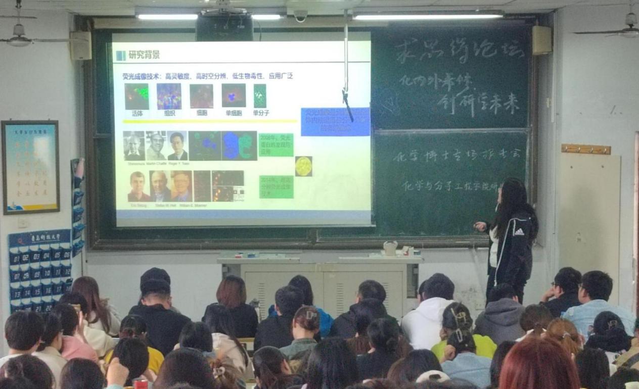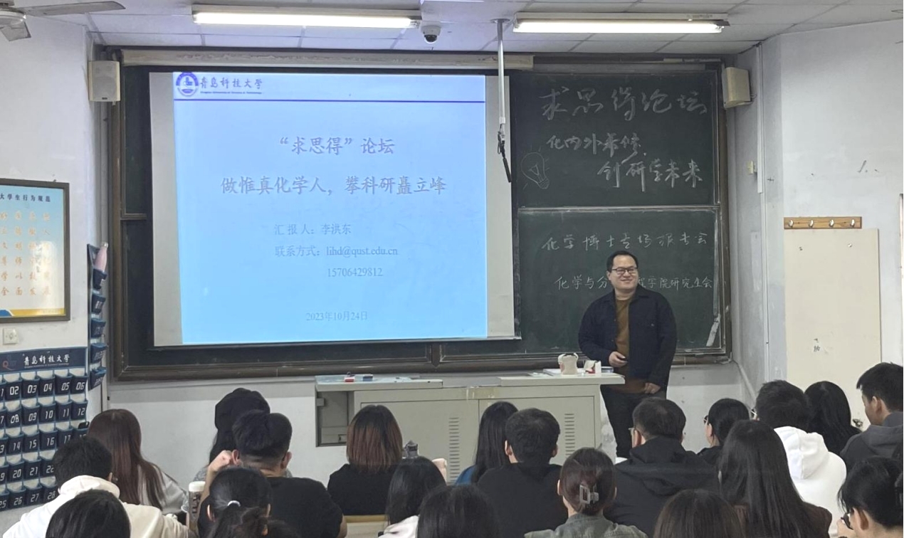 2023年10月24日下午1:30,w66利来旗舰厅研究生于第一教学楼202室开展“求思得”论坛:惟真惟德大讲堂——“化内外兼修,创研学未来”化学博士专场报告会。李洪东、曾祥花和胡博博士应邀出席交流活动。报告会由刘凯昱主持,w66利来旗舰厅研究生参加本次报告会。