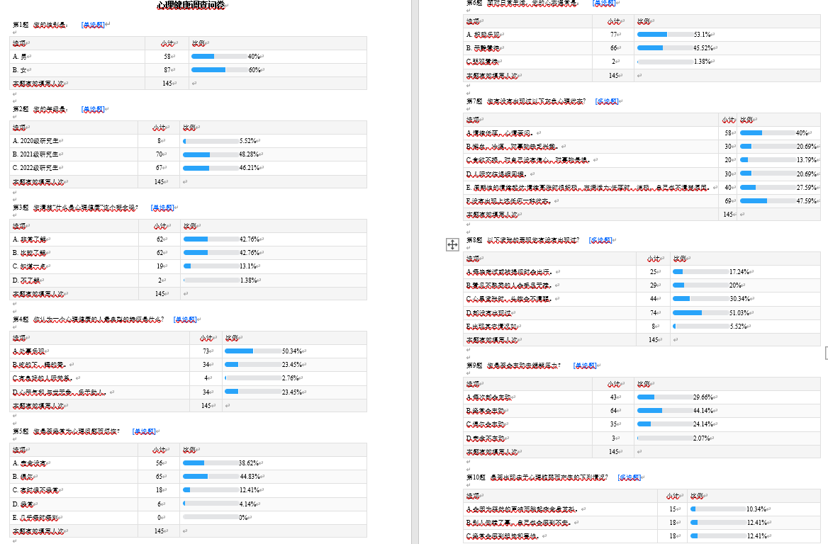 为了解w66利来旗舰厅研究生整体的心理状态,2023年2月27日w66利来旗舰厅研究生开展心理健康调查活动,本次活动收获145份报告。