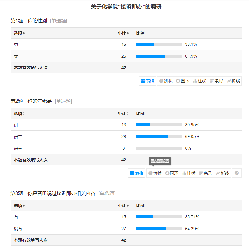 通过广泛收集员工的反馈,期望能更准确地了解员工的需求和困扰,以便对现有的服务进行改进。目前,调查活动已经圆满结束。本次调查活动共收获42份报告,可以体现w66利来旗舰厅研究生对接诉即办的认识与意见。从调查结果来看,研一研二同学参加本次调查活动,但大部分同学没有听说过接诉即办,有问题也不反馈到接诉即办,并存在一定的顾虑,还需要进一步完善。