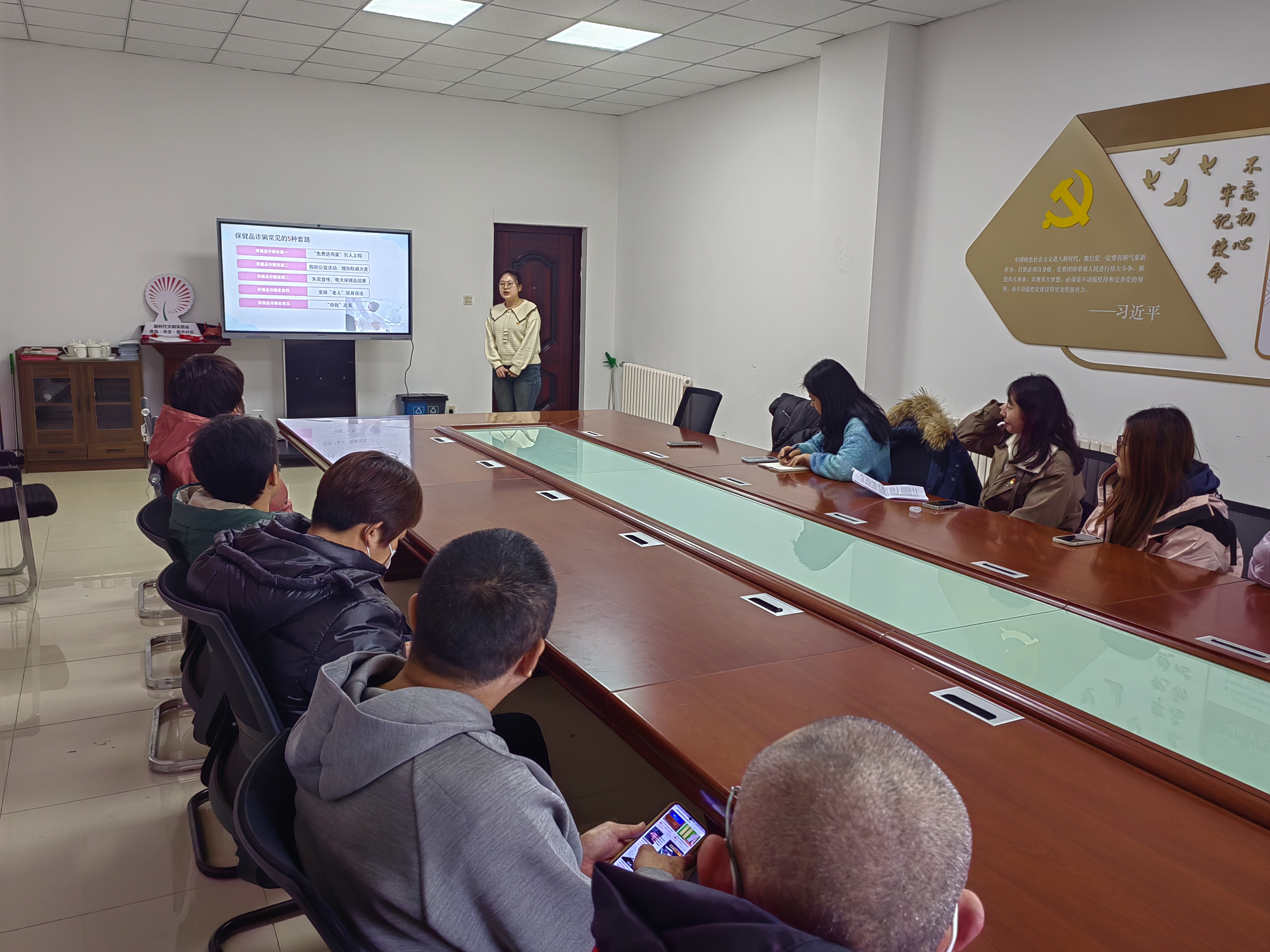 本次老年人防诈骗主题宣讲首先由公司研究生第三党支部书记高诗文围绕“电信诈骗”主题,为居民讲解分析了电信诈骗的特点、种类、危害性及防范技巧,引导居民做到“不听、不信、不转账、多核实”。提醒居民做好自身证件信息、手机号码、银行卡等私人信息的保护工作,树立防骗意识。之后,宣传团成员孙银静围绕“保健品诈骗”主题,揭秘了保健品骗局,提醒广大居民一定警惕“养生”骗局,正确认识保健品,注意保健品与药品的区别,任何保健品都不能治疗疾病,对自己不了解的所谓“高科技”产品,不要道听途说、轻易购买。