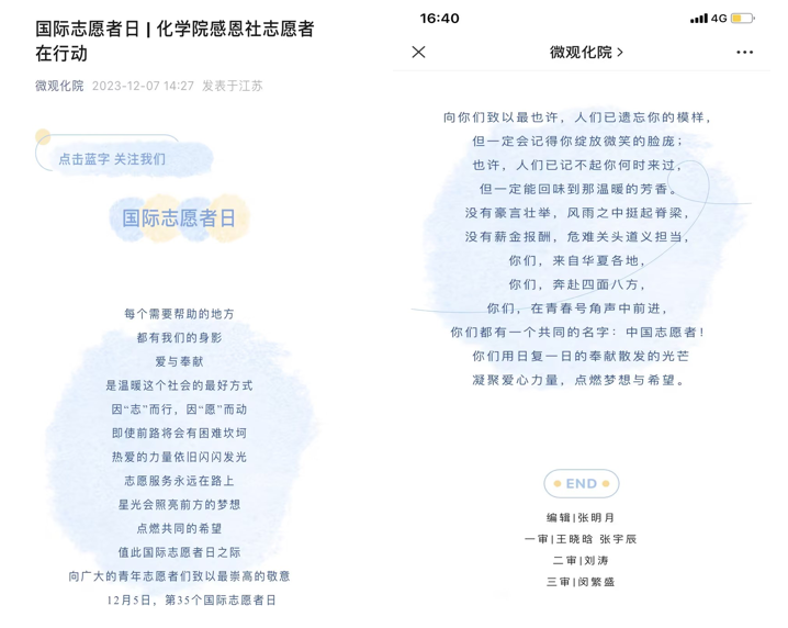 感恩社同时在公司微信公众号发布《国际志愿者日丨w66利来旗舰厅感恩社志愿者在行动》推文,弘扬志愿服务精神。同时组织开展“感恩主题三行诗”征集。(通讯员:闵繁盛、李国兰)