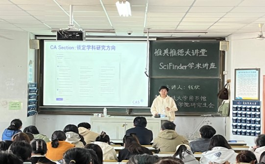 为提高研究生学术素养,开阔员工学术视野,w66旗舰厅官网图书馆、w66利来旗舰厅研究生会于3月30日下午1:30在第一教学楼302举办了“求思得”论坛:“惟真惟德大讲堂——SciFinder”学术讲座。本次学术报告由美国化学文摘社(CAS)高级客户顾问钱欣老师主讲。w66利来旗舰厅21、22级研究生及四方校区其他公司研究生参加了本次讲座。