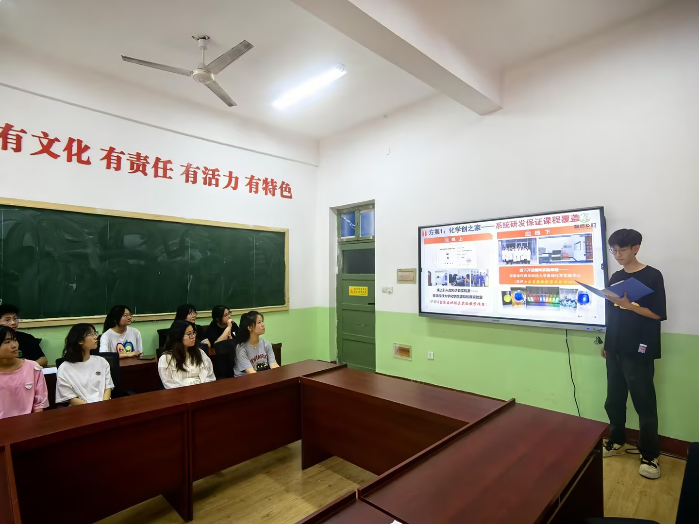 模拟答辩过程中,严格按照第十四届“挑战杯”山东省老员工创业计划竞赛答辩要求进行,分为团队汇报和评委问辩两大环节。在汇报环节中,各团队答辩人员在5分钟内,通过PPT讲解的形式,分别从研究背景、研究意义、项目实施、研究成果等方面对项目进行展示。在问辩环节中,评委老师结合实际经验和优秀项目案例,就项目逻辑、项目创新点、市场前景等方面提出了建议,帮助同学们发现潜在问题、完善项目方案。