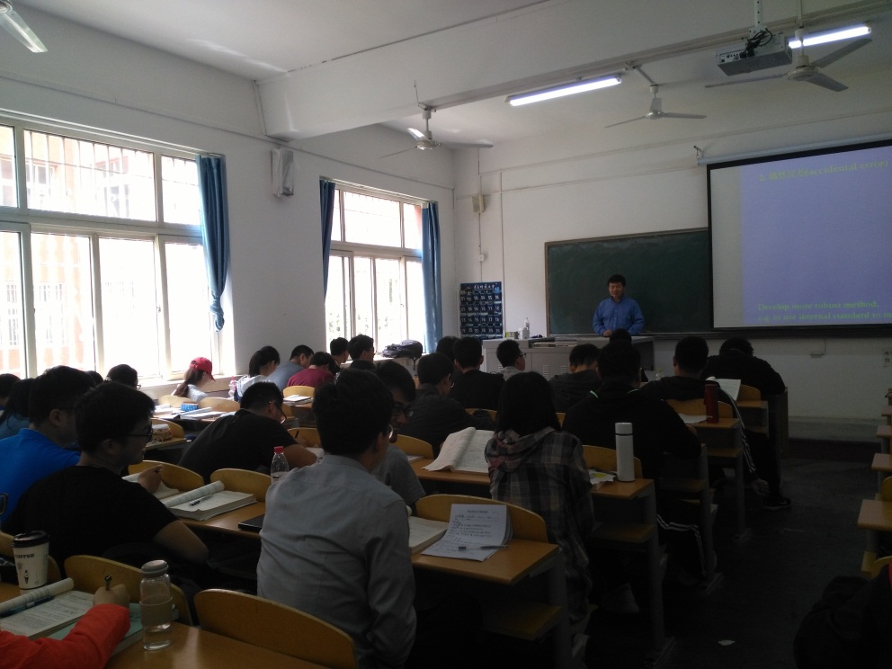 宝洁公司(P&G)美国总部分析科学部首席科学家Chu Zhu博士来到w66旗舰厅官网,为w66利来旗舰厅应用化学专业(中美)员工讲授分析化学(Analytical Chemistry)、仪器分析(Instrumental Chemistry)等课程。
