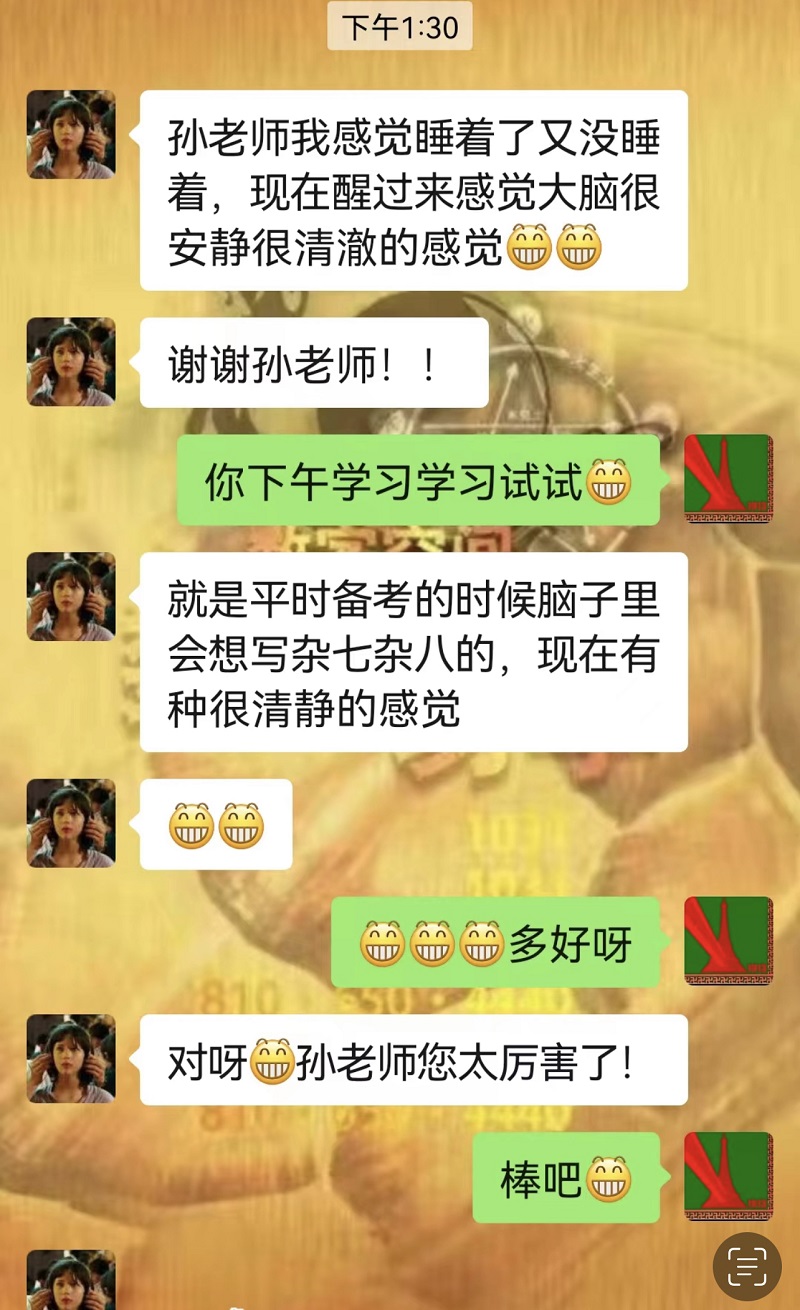 本期团辅以员工自愿报名的形式,通过腾讯会议开展,中美教研室教师王新星、公司学工办主任刘施施和近20位应化中美班员工参加。在团辅中,孙雪梅老师通过团体催眠的方式,引导同学们完全放松,将注意力关注在自己的感觉上,逐渐疏解身心压力,自我赋能。团辅后,部分同学反映:做完辅导训练,自己心情平静,大脑活跃,思路清晰,极大地减少了自己的考研焦虑、提高了学习效率。